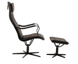 Bröderna Anderssons CHIC fåtölj med gung.mek. + fotpall läder classic svart