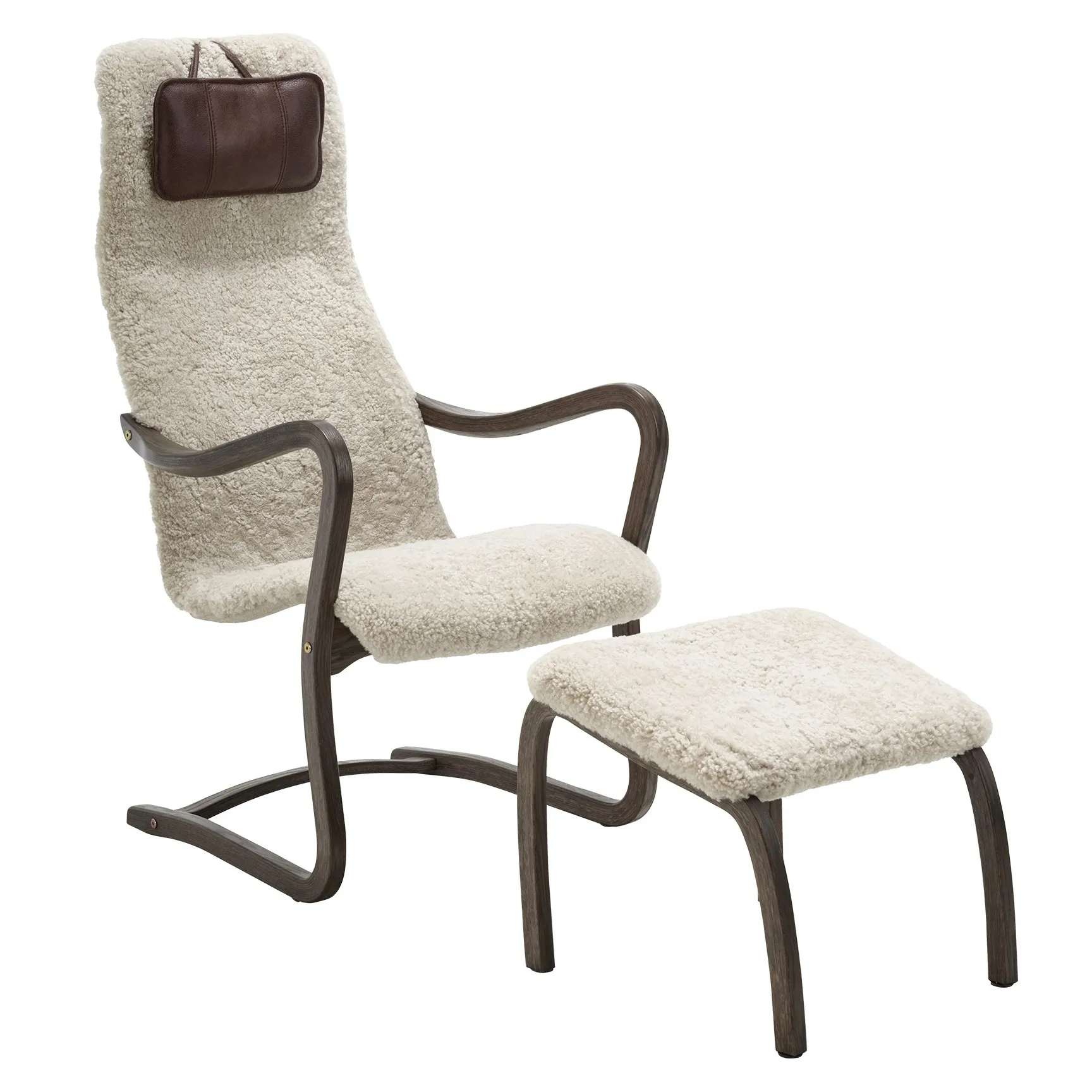 Bröderna Anderssons LUNA fåtölj + fotpall, rökt ek/fårskinn moonlight