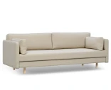 TWIN är klädd i det italienska Story-tyget som tillverkas av 75% återvunnen bomull och 25% återvunnen polyester – ett ansvarsfullt val med lång livslängd. Finns i flera färgalternativ och med ben i massivt ask i olika ytbehandlingar för att passa olika stilar och miljöer.