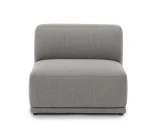 Denna soffmodul är en mittdel och har därför öppet slut till både höger och vänster. Den kan enkelt kopplas samman med andra moduler via metallfästen, vilket ger en stabil och säker konstruktion. Med sin djupa och låga sittdyna erbjuder modulen en avslappnad loungestil som är både inbjudande och stilren.