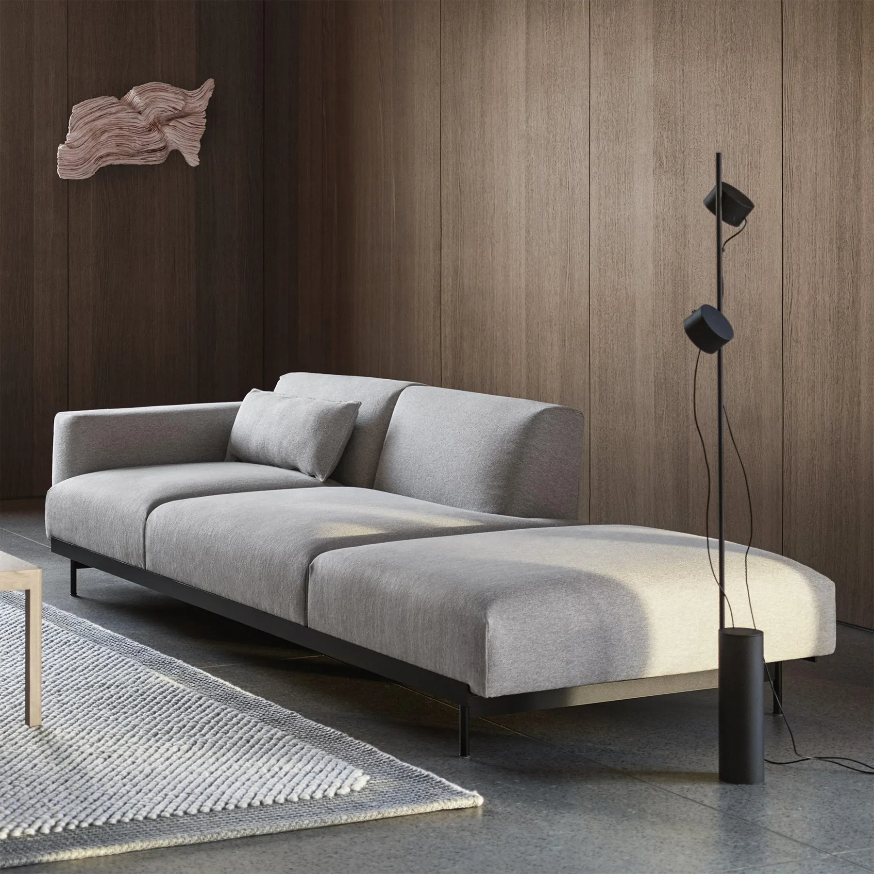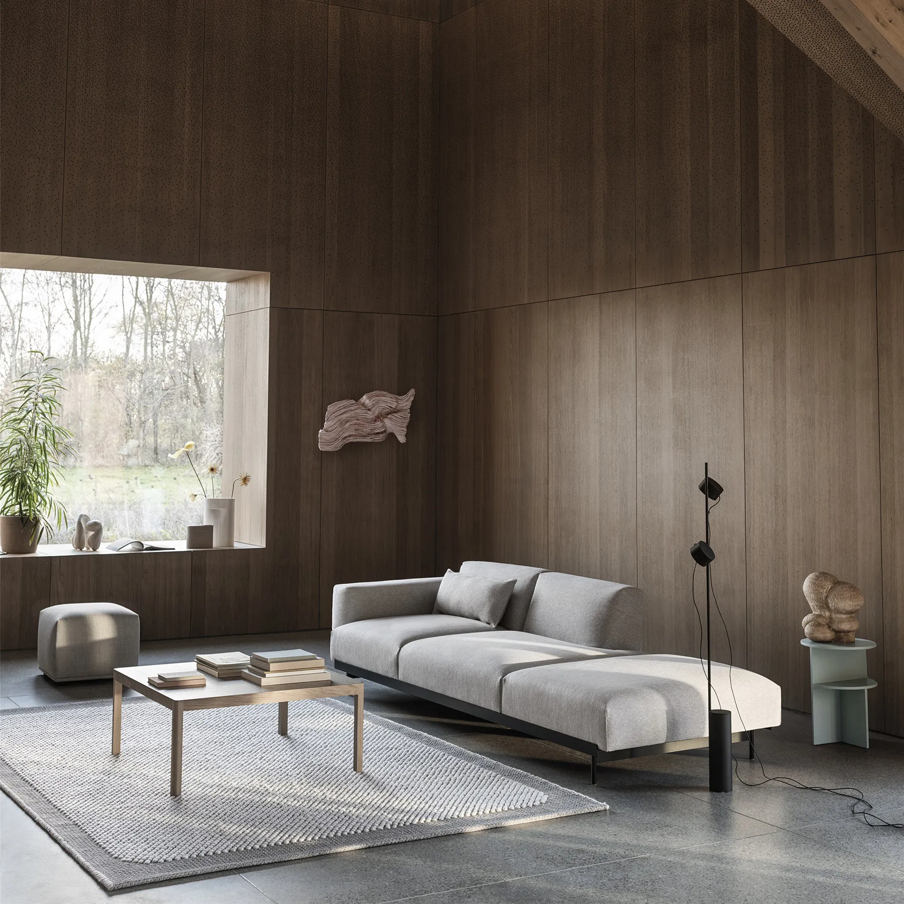 In Situ 3-sits – Konfiguration 5 från Muuto, designad av Anderssen & Voll, är en färdig uppsättning med tre moduler. Den öppna delen ger soffan ett luftigare uttryck, medan de djupa dynorna och den diskreta stålramen håller ihop formen till en helhet.