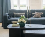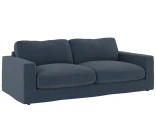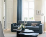 Alla dynor har avtagbara överdrag, och även stomklädseln kan tas av. Tyget Casual #15 jeansblå har en linne-liknande struktur i en sval blå nyans som tillför färg utan att dominera – ett modernt alternativ som passar lika bra i ljusa som mörkare inredningar.
