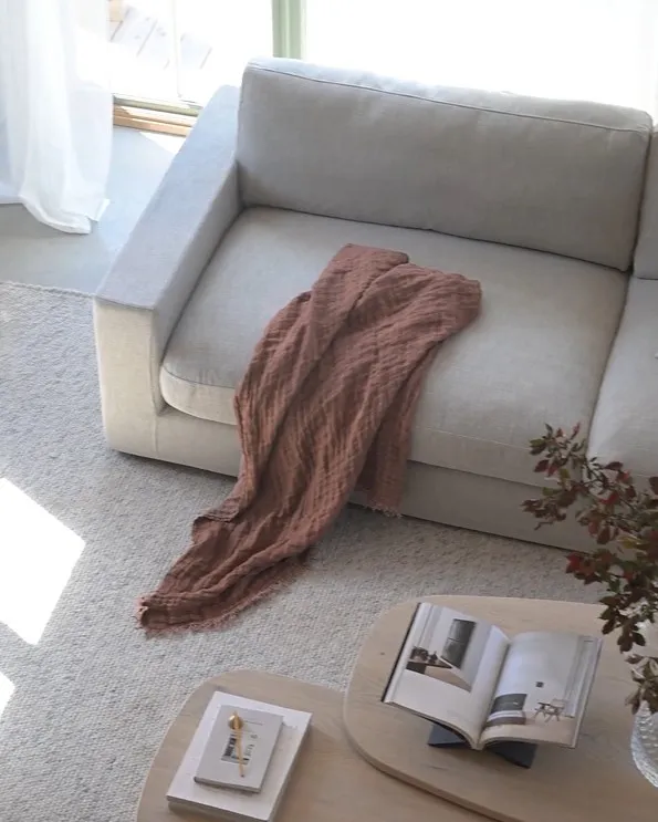 Alla dynor är vändbara med avtagbara tygöverdrag, och även stomklädseln kan tas av. Tyget Casual #36 sand är ett linne-liknande tyg i varm, neutral ton som passar i de flesta hem. Det är slitstarkt, tvättbart i maskin och framtaget för att klara vardagens användning utan att tappa sin karaktär.