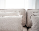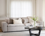 Den är klädd i högkvalitativt tyg som inte bara är mjukt och behagligt, utan också slitstarkt och lätt att underhålla. Fyra dekorationskuddar ingår. Ben i svart plast, 5 cm höga.
