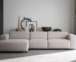 Willard 4-sitssoffa med schäslong är en minimalistisk och modern loungesoffa med plats för många – här klädd i det vackra bouclétyget Alice i en ljusbeige ton. Designen är mjuk och rund, vilket ger en varm och inbjudande känsla. Den generösa schäslongen ger dig extra sittplatser, perfekt för dig som vill samla familjen och vännerna i vardagsrummet.