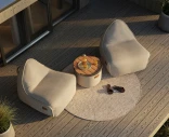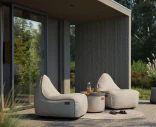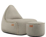 Ett loungeset ur Cobana-kollektionen från SACKit, tillverkat i ett delvist återvunnet premiumtyg med mjukare känsla och hög slitstyrka. Säckstolen och sittpuffen är designade för bekväm avkoppling både inomhus och utomhus.