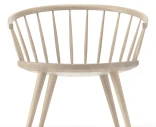 Namnet kommer från arcades, romerska valvgångar, och ryggens båge är en tydlig referens till den idén. Pinnarna i ryggen ger stöd och ett öppet intryck, vilket gör att stolen känns lätt även när den står fritt i rummet.