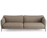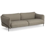 Soffan kan fås i både tyg och läder och passar såväl hemmamiljö som offentlig användning.
