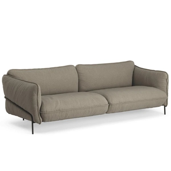 Soffan Continental är perfekt för den som vill ha en stilren soffa som ser bra ut från alla håll, vilket gör den utmärkt för placering mitt i rummet. Den slimmade basen i metall kontrasterar snyggt mot de mjuka dynorna med stoppning i kallskum och polyesterfiber. Soffan är klädd i tyget Camira Main Line Flax 23 Bank, ett miljövänligt och hållbart material som harmoniserar med benen i svart stål.