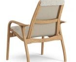 Laminett ritades av Yngve Ekström och är den lågbyggda syskonmodellen till den ikoniska Lamino. Med sin böjda form och svepande siluett ger den ett luftigt uttryck som passar i både små och stora rum. Den lägre ryggen gör fåtöljen diskret men ändå tydlig i formen – en favorit för läshörnan, vardagsrummet eller loungen.