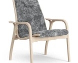 Laminett ritades av Yngve Ekström och är den lågbyggda syskonmodellen till den ikoniska Lamino. Med sin böjda form och svepande siluett ger den ett luftigt uttryck som passar i både små och stora rum. Den lägre ryggen gör fåtöljen diskret men ändå tydlig i formen – en favorit för läshörnan, vardagsrummet eller loungen.