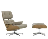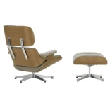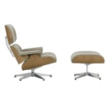 Vitra Eames Lounge Chair med fotpall i körsbärsfanér, klädd i lädret Leather Natural F – Dark Sand 78 och med helpolerad aluminiumbas. En ikon inom modern design där sofistikerad materialkänsla möter tidlös komfort.