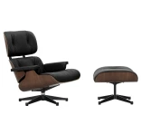 Vitra EAMES LOUNGE CHAIR fåtölj med fotpall, Dark Walnut - Leather Nero 66