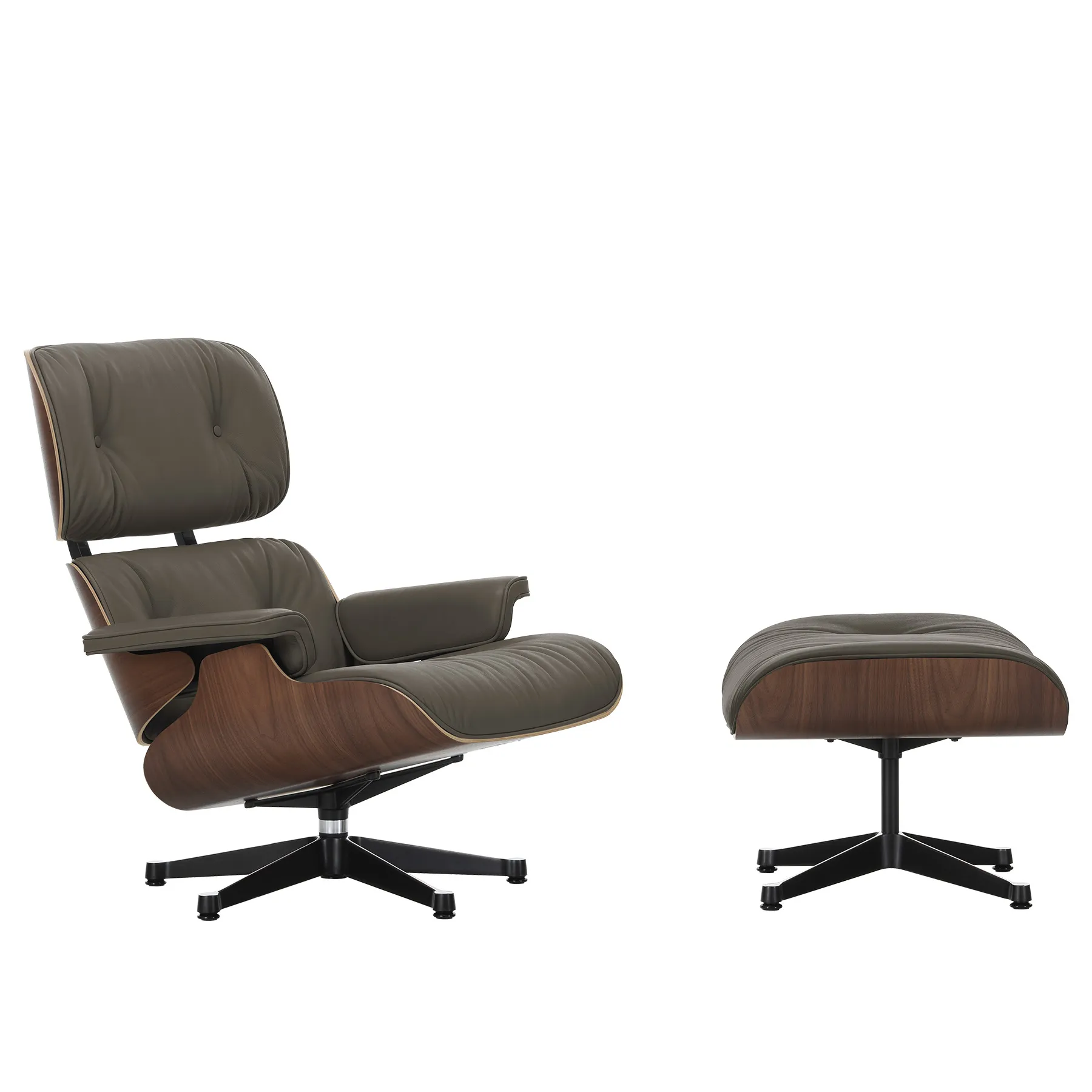 Vitra EAMES LOUNGE CHAIR fåtölj med fotpall, Dark Walnut - Leather Umbra Grey 61