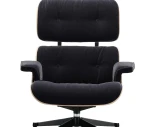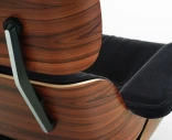 Eames Lounge Chair och Ottoman är ett av designhistoriens mest välkända verk, och har varit synonymt med komfort och hantverk sedan 1956. I denna version framhävs kontrasten mellan det livfulla Santos Palisander-fanéret och det mörka, skimrande tyget Calma 08 – ett tätt luggtyg i mohair och bomull, med subtil lyster och mjuk känsla.