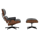 Vitra EAMES LOUNGE CHAIR fåtölj med fotpall, Santos Palisander - Leather Nero 66
