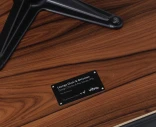Klädseln i Leather Premium F 66 Nero är ett vegetabiliskt garvat semianilinskinn som kombinerar mjuk följsamhet med slitstyrka och en sidenmatt finish. Den pulverlackerade aluminiumbasen ger ett sobert intryck och framhäver stolens välkända siluett. Varje proportion är finjusterad – från ryggens vinkel och armstödens stöd till det separata fotstödet – för att skapa en avslappnad sittställning som håller i längden.