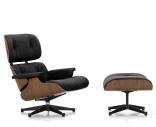 Vitra EAMES LOUNGE CHAIR fåtölj med fotpall, Walnut - Leather Nero 66