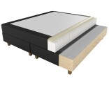 | Fjädring: | Två separata kassetter. Övre delen av stödjande skumgummilager med fem zoner 17 cm, 4 cm viscoelastiskt ytmaterial. Ramdelen har fast solid base -konstruktion. |