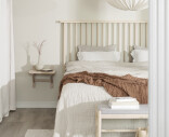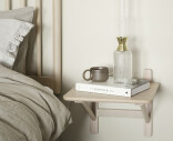 Lättplacerade sängbordet CAMROSE i lackad vitpigmenterad ek fästes på väggen i lagom höjd för din säng, eller varför inte i hallen som ett litet avlastningsbord.