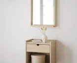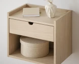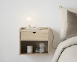 Hillmond väggmonterade sängbord i vitpigmenterad ek är ett stilrent tillskott till hemmet. Den kan användas både som vägghylla i hallen eller som sängbord i sovrummet. Med en mjukstängande låda ger den praktisk och elegant förvaring, och eftersom den inte tar upp golvyta skapas en luftigare känsla.