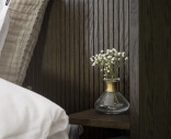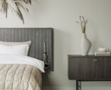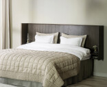 Redmond sänggavel med integrerade sängbord är både elegant och exklusiv vilket ger dig en härlig hotellkänsla i ditt sovrum. Sänggaveln har ett dekorativt ribbat mönster i fin brun nyans och kan gärna placeras tillsammans med Clearbrook förvaringsmöbler som har samma färg och vackra mönster. Redmond sänggavel passar perfekt till sängar som är 180 cm breda. Tack vare de justerbara metallbenen kan du själv välja höjd på sänggaveln, från 126 till 150 cm. Beslag för att fästa sänggaveln i väggen medföljer.