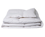 | Material: | Fyllning i 90 % vitt gåsdun, 10 % små fjädrar. Yttertyg i 100 % bomull. |