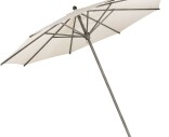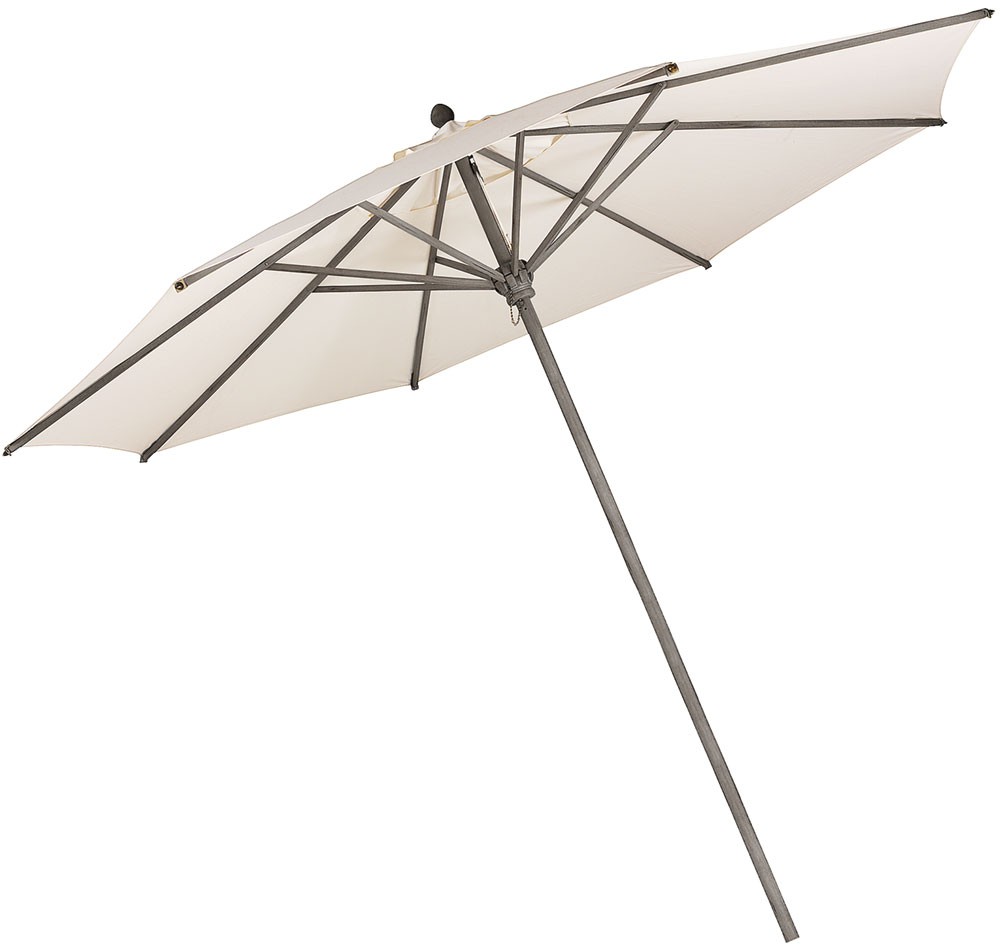 Mahogany wood. Vintage grey/polyester. 8 ribs. Leather strap.
