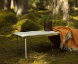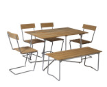 Bänken har ett fällbart stativ i varmförzinkat stål, vilket gör den slitstark och motståndskraftig mot väder och vind. Sitsen finns i oljad furu, oljad ek, vitlackad ek eller obehandlad teak, och alla trädetaljer är FSC®- eller PEFC-certifierade, vilket garanterar ett hållbart skogsbruk.