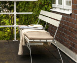 Soffan har ett stativ i varmförzinkat stål, vilket ger den hög hållbarhet och vädertålighet. Sits och rygg finns i tre utföranden: oljad ek, vitlackad ek och obehandlad teak. Alla trädetaljer i ek och teak är FSC®-certifierade, vilket säkerställer ett ansvarsfullt skogsbruk.