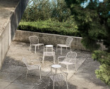 Thorvald är tillverkad av slitstarkt och återvinningsbart stål med fokus på miljöpåverkan. Sittkuddar och dynor ger extra komfort, och den lätta designen underlättar placering.