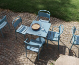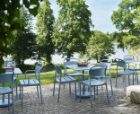 “The Linear Steel Café Table was designed from the idea of presenting durable materials in a sophisticated and understated expression for outdoor use with its form language inspired by the notion of meetings—the meetings of lines, the meetings of shapes and the meetings of materials. The design is defined by its straight lines for a contemporary yet timeless aesthetic, translating the values of elegance, longevity and functionality into modern outdoor furniture.”