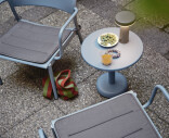 “The Linear Steel Series was designed from the idea of presenting durable materials in a sophisticated and understated expression for outdoor use with its form language inspired by the notion of meetings—the meetings of lines, the meetings of shapes and the meetings of materials. The design is defined by its straight lines for a contemporary yet timeless aesthetic through the details of its folded edges, half-circular intersecting legs and small spacing for easy outflow of water. It is through these subtle elements that the Linear Steel Series translates the values of elegance, longevity and functionality into modern outdoor furniture.”