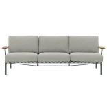 Settle 3-sitssoffa är designad för att vara både ett praktiskt och ett stilfullt tillskott till uteplatsen. Den galvaniserade och pulverlackerade stålramen säkerställer hållbarhet och stabilitet, medan den genomtänkta designen med synliga textilband ger en modern och luftig känsla. Armstöden i FSC™-certifierad sapele-mahogny bryter av metallens strama linjer och ger soffan ett mjukare uttryck.