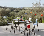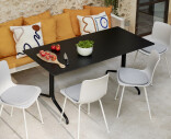 Belleville-matbordet från Vitra är ett elegant och mångsidigt bord, perfekt för både moderna och klassiska inredningar. Det svarta pulverlackerade stålet och bordsskivan av laminat ger en robust konstruktion som är motståndskraftig mot rost och UV-strålning. Bordet kan användas både inomhus och utomhus.