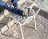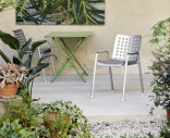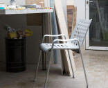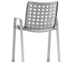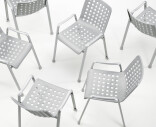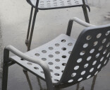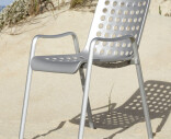 Landi stolen är en ikonisk klassiker som pryder parker, trädgårdar och hem över hela världen. Stolen är tillverkad i aluminium och har en perforerad sits med 91 hål, vilket gör den lätt och flexibel. Denna stapelbara stol har en unik estetik. Hålen i sitsen förhindrar att regnvatten samlas, vilket gör stolen perfekt för utomhusbruk. Stolen är vädertålig och erbjuder långsiktig kvalitet och design. Stolen har glidfötter i ljusgrå TPE.