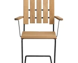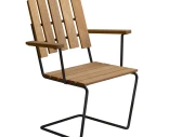 Den fjädrande konstruktionen skapas av ett stativ i massivt fjäderstål, vilket ger en mjuk och behaglig sittupplevelse. Fåtöljen finns i flera utföranden: oljad furu, oljad ek, grönmålad ek, vitmålad ek och obehandlad teak. Alla varianter med furu har ett grönt stativ, medan ek- och teakmodellerna finns med varmförzinkat eller svart stativ.
