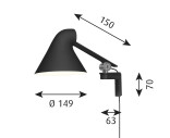NJP-vägglampan har ett justerbart huvud och arm. Armaturen ger ett bländfritt direkt ljus och reflekterar även en del av ljuset genom den bakre delen av huvudet och lyser upp armens övre del. Den ergonomiska designen av armaturhuvudet formar ljuset och ger optimal ljusriktning.