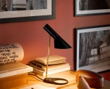 AJ Mini är en mindre bordslampa med riktat ljus, justerbar skärm och detaljer i obehandlad mässing. Den kompakta storleken gör den väl lämpad för användning på sängbord, fönsterbrädor eller mindre skrivbord.