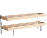 Lattiamalli, jossa on 2 hyllytasoa ja yksityiskohdat hiottua terästä.