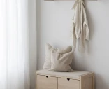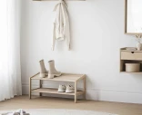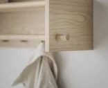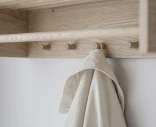 Hillmond-hattuhylly on valmistettu massiivitammesta ja tammenviilutetusta MDF-levystä, ja lakattu pinta luo vaalean ja ajattoman ilmeen. Hillmond-sarja koostuu korkealaatuisista materiaaleista ja skandinaavisesta muotoilusta, jossa pyöreät muodot kohtaavat suorat linjat luoden tasapainoisen ja tyylikkään ilmeen. Hylly toimitetaan kokoamattomana ja se on helppo yhdistää muihin Hillmond-sarjan huonekaluihin harmonisen eteiskokonaisuuden luomiseksi.