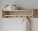 Hillmond-hattuhylly Rowicolta on tyylikäs ratkaisu eteiseesi, valmistettu valkopigmentoidusta tammesta. Hyllyssä on viisi koukkua edessä, kaksi lisäkoukkua sivuilla sekä vaatetanko henkareille – tarjoten runsaasti tilaa sekä takeille että asusteille. Yhdistä muihin Hillmond-sarjan huonekaluihin saadaksesi täydellisen eteiskokonaisuuden.