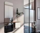 One More Look on kevyt ja ilmava peili, josta huokuu minimalistinen ja skandinaavinen tunnelma. Kokovartalopeili sopii loistavasti käytävään tai pieneen eteiseen. Peiliin kuuluu hylly sekä kaappi jotka tarjoavat säilytystilaa. Kaapin sisällä on käsipeili sekä keinonahkainen säilytyslaatikko, jossa pienet esineet pysyvät tallessa.