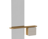 Materiaali: Massiivitammi, maalattu MDF, peililasi, messinginvärinen teräs, tummanruskea keinonahka