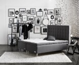Kaunis, pehmustettu Ängö-sängynpääty on kevyesti tikattu ja napitettu. Keveän Ängön tyyli on hillitympi, ja se henkii hienostunutta ylellisyyttä.