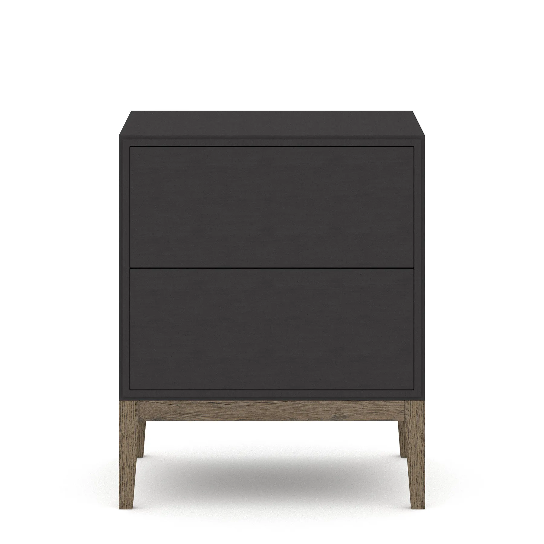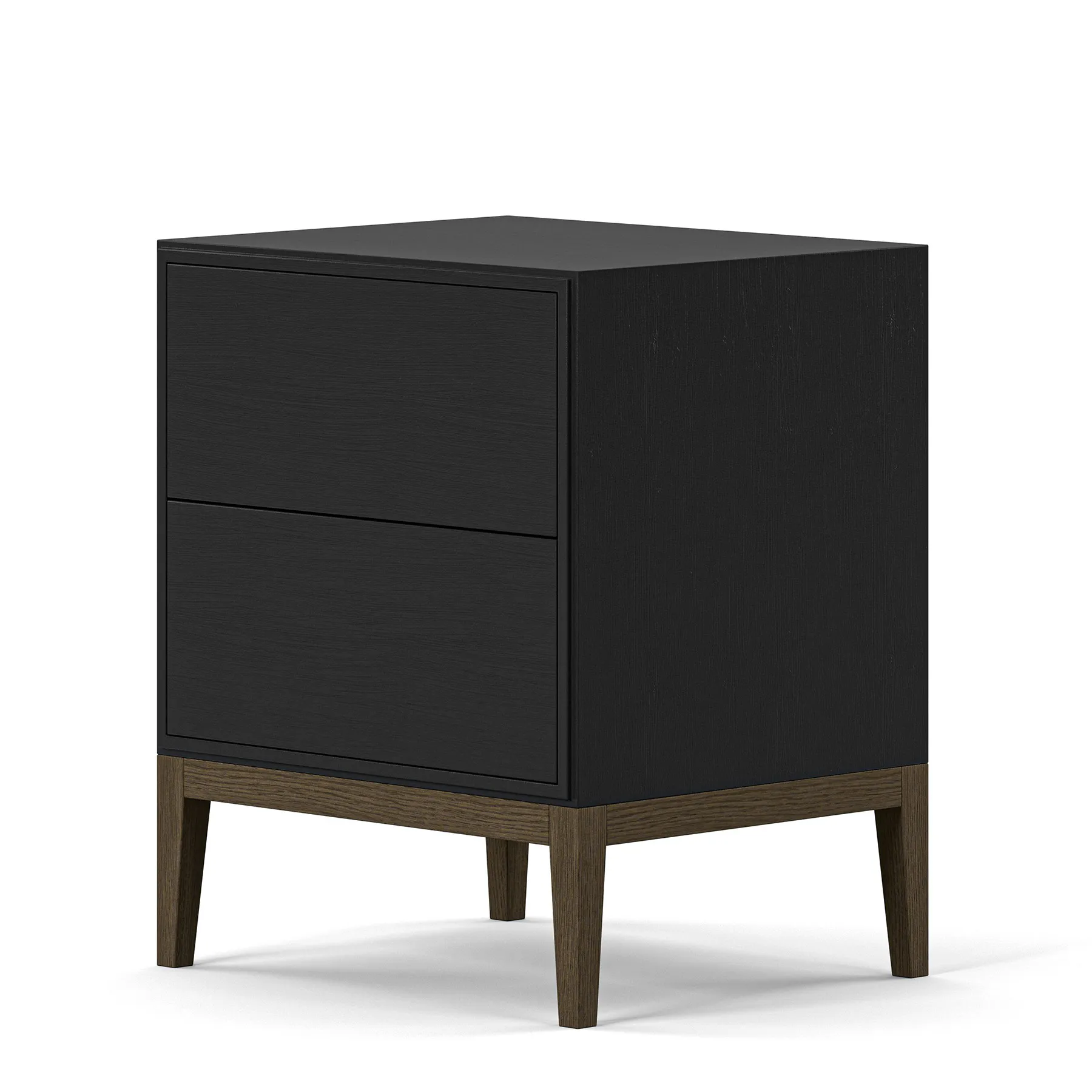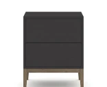 Edge 2.0 -yöpöytä kahdella laatikolla on kompakti yöpöytä, jossa on käytännöllistä säilytystilaa. Kaluste on käsinmaalattu ja siinä on kevyesti strukturoidtu pinta, ja se seisoo öljytyn pähkinäpuun sävyisillä jaloilla.