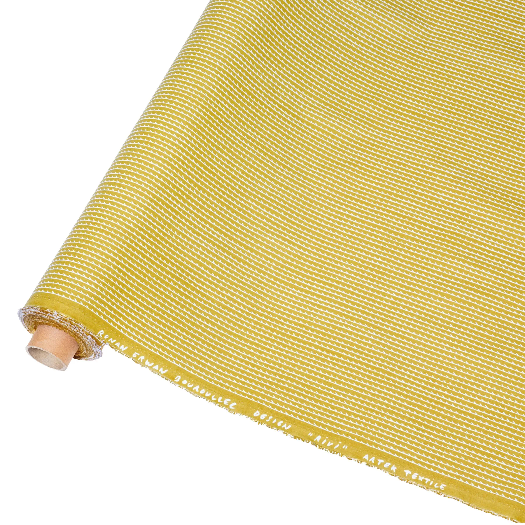 Artek RIVI puuvillakangas, keltainen/valkoinen