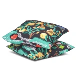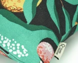 Botanical Orange on kuviollinen tyynynpäällinen, jossa on appelsiinipuita ja vehreää lehvästöä esittävä kuvio. Kankaassa on selkeä rakenne ja pellavamainen pinta. Painatus toistuu tyynyn molemmilla puolilla.