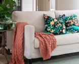 Botanical Orange -tyynynpäällinen Classic Collectionilta on valmistettu puuvillasta, jolla on pellavamainen tuntu ja slub-rakenne. Kuosissa on appelsiinipuu, jota ympäröivät lehvästö ja kukat. Ilmeikäs yksityiskohta, joka sopii sekä sohvalle että sängylle.