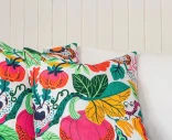 Classic Collectionin Heritage Garden on kuviollinen tyynynpäällinen, jossa on runsas hedelmien, lehtien ja kasvillisuuden inspiroima kuvio. Tukeva puuvillakangas tuo pintaan rakennetta, ja värit elävöittävät niin sohvaa kuin sänkyäkin.